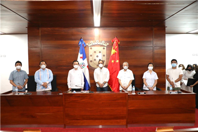 马丁内斯市长热烈欢迎张润大使一行到访,表示在此疫情危机时刻,中国大使亲临圣地亚哥市并伸出援助之手,展现了无与伦比的团结精神,此举令人鼓舞。马高度赞赏多中建交两年来双边关系取得的成果,坚定支持发展两国关系,并表示愿积极开展同中国地方省市的互利合作。马最后表示,旅居圣地亚哥的中国侨民勤奋努力、遵规守纪,为当地以及多米尼加社会发展作出了重要贡献。