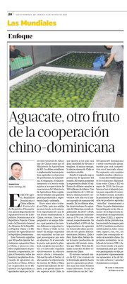 2020年8月14日,驻多米尼加大使张润在当地最大报《里斯汀报》发表署名文章《鳄梨-中多合作结出又一成果》。全文如下: