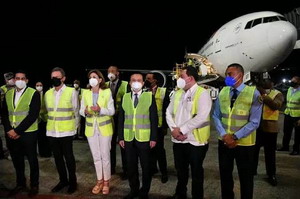 2021年2月23日晚,多米尼加从中国采购的新冠疫苗运抵多首都圣多明各。多副总统、卫生事务总协调培尼亚,外长阿尔瓦雷斯,全国卫生署署长拉玛等赴机场迎接。驻多米尼加大使张润应邀出席仪式。