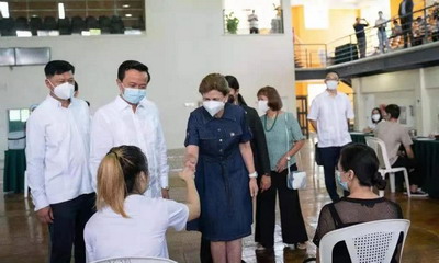 2021年5月29日,在驻多米尼加使馆积极协调下,多政府在首都圣多明各奥林匹克中心击剑馆为旅多华侨华人举办“春苗行动”第二场新冠疫苗接种专场,为侨胞进行二剂次集中接种。多副总统培尼亚亲赴现场,视察接种工作,慰问接种侨胞。驻多米尼加大使张润陪同。