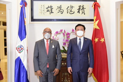 2021年6月17日,多米尼加众议长帕切科率众议院6大党团主席拜会驻多米尼加大使张润,双方就建党百年、抗疫合作、外交理念等共同感兴趣的话题交换意见。