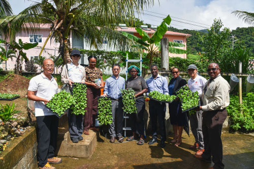 2025年11月19日,驻多米尼克大使储茂明带领援多米尼克农业专家组一行,联袂多外交部长亨德森共同走访皮埃尔·查尔斯中学农业课园地,并捐赠部分农业物资。