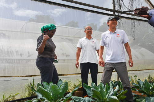 储茂明大使一行参观了蔬菜大棚等农业设施,并与校长、当地农业推广站人员、农业课老师等深入交流蔬菜育苗技术细节,双方表示未来将深入开展农业技术合作,助力该校农业课再上新台阶。