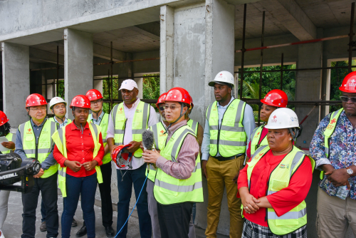 2025年12月4日,驻多米尼克大使储茂明、多教育部长艾尔弗雷德陪同多总理斯凯里特视察援多飓风灾后卡里比斯荷和蒂博小学重建项目,并共同接受多主流媒体采访。中方项目负责人陪同。