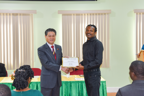 储茂明大使祝贺获奖学生并表示,中国政府刚刚发布了第三份《中国对拉丁美洲和加勒比政策文件》,愿携手多米尼克推进“五大工程”,共谋发展振兴,希望在场青年能坚持学习中文,增进对中国了解,积极投身到深入中多友好的事业中。