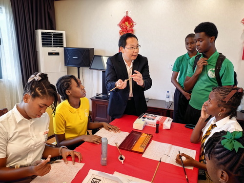 2026年4月17日,驻多米尼克使馆举办2026年“国际中文日”活动暨第二届中多友谊绘画比赛颁奖典礼,驻多米尼克大使储茂明、多教育部常秘吉斯特、多中友协会长奎恩以及多米尼克文法学校等六所学校师生出席,多主流媒体现场报道。