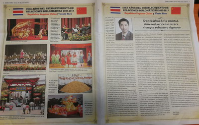 2017年6月30日,驻哥斯达黎加使馆与哥《号外报》、新华社驻圣何塞分社合作发行庆祝中哥建交十周年纪念专刊。