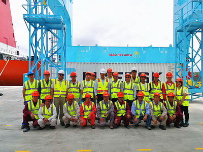 汤大使还看望慰问了在莫因港进行设备安装和调试的上海振华重工的全体员工,感谢他们用辛勤的劳动和付出为中哥两国经贸合作做贡献,祝愿他们在哥工作生活圆满顺利。