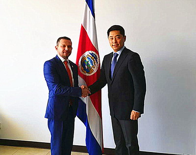 2018年7月12日,驻哥斯达黎加大使汤恒会见哥科技与电信部长萨拉萨尔。