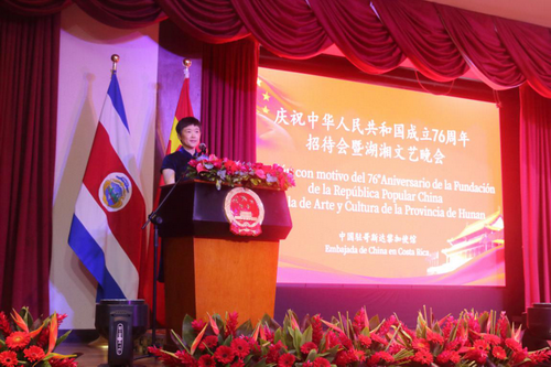 2025年9月29日,驻哥斯达黎加使馆隆重举办庆祝中华人民共和国成立76周年招待会。驻哥斯达黎加大使王晓瑶、哥多边事务副外长索拉诺、前总统菲格雷斯、各界代表及驻哥使节,旅哥华人华侨代表等逾300人出席。