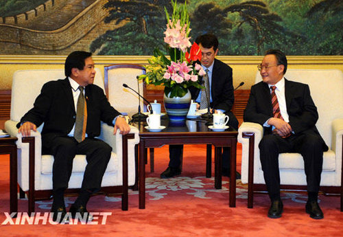 10月21日,中共中央政治局常委、全国人大常委会委员长吴邦国在北京人民大会堂会见菲律宾众议院议长、