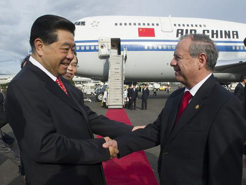 当地时间12月3日下午,应哥斯达黎加政府邀请,全国政协主席贾庆林抵达圣何塞,开始对哥斯达黎加进行正式友好访问。