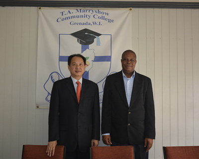 2017年7月12日,驻格林纳达大使赵永琛会见格玛丽秀社区大学校长布里顿。