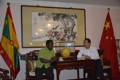 2017年7月21日,应驻格林纳达大使赵永琛邀请,格林纳达总理米切尔到大使官邸做客,就共同关心的有关问题进行了深入探讨。