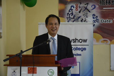 赵大使致辞表示,这是格林纳达举办的第四届“汉语桥”中文比赛,我们非常欣喜地看到,近年来越来越多的格林纳达青年开始学习中文和中国文化,加深了对中国发展、中国文化和中国人民的了解。这有利于在两国人民之间架起一座桥梁,为中格关系创造更加美好的未来。