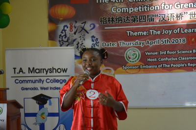 2018年4月5日,第四届格林纳达中文比赛暨第十一届“汉语桥”世界中学生中文比赛格林纳达赛区预赛在格玛丽秀社区大学(TAMCC)成功举办。驻格林纳达大使赵永琛、TAMCC校长布里顿及师生代表等近百人出席。赵永琛大使以及布里顿校长等为获奖者颁发了证书和奖品。格主流媒体进行了现场报道。