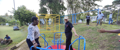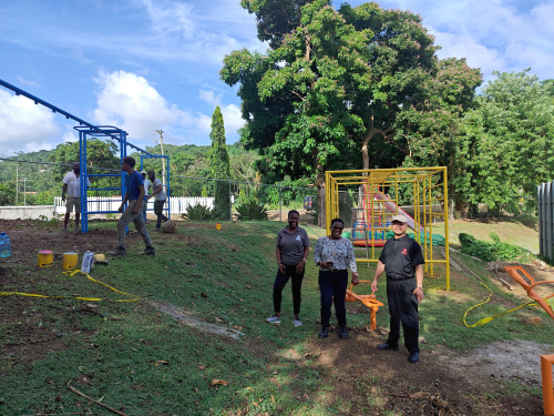 2024年10月10日,应格林纳达圣戴维选区办公室邀请,驻格林纳达大使韦宏添与选区办官员一起考察了使馆与选区合作实施的拉萨杰斯儿童游乐园项目进展情况。
