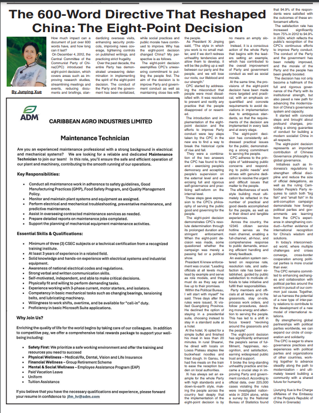2025年9月19日,驻格林纳达使馆临时代办薛君英在格林纳达媒体《新今日报》发表署名文章《重塑中国的600字文件:中央八项规定》。主要内容如下: