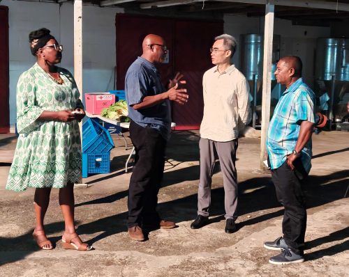2025年9月27日,驻格林纳达大使杨舒赴格林纳达圣戴维教区拉萨杰斯考察第八期援格农技合作项目,与格代总理安德鲁斯、农业部常秘巴格万一同出席项目结项答谢会并致辞。