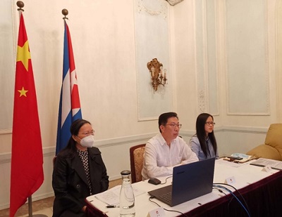 2020年10月28日,驻古巴大使陈曦出席中国国家国际发展合作署同古巴外贸外资部举行的视频会议,国合署副署长周柳军、古巴外贸外资部副部长里瓦斯、古巴驻华大使佩雷拉等参加了会议。