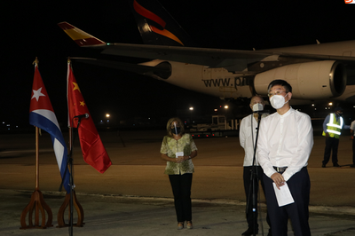 2021年8月28日晚,中国政府紧急援助古巴的一批抗疫物资运抵古巴首都哈瓦那。中古双方在机场举行简短交接仪式,驻古巴大使马辉以及古巴外贸外资部长马尔米耶卡分别讲话。古外贸外资部副部长里瓦斯、外交部亚大司司长白诗德以及新华社、中央电视台、中国国际电视台,古巴新闻通讯社、拉丁美洲通讯社、《格拉玛报》、古巴电视台新闻中心、时钟电台、起义电台等中古两国媒体参加。
