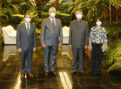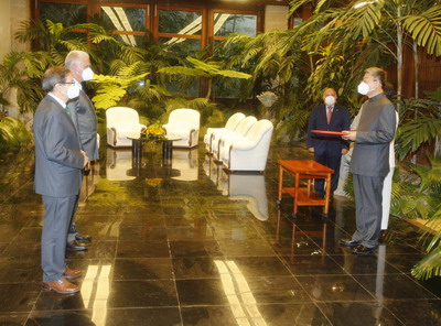 2021年10月21日,驻古巴大使马辉在古巴首都哈瓦那革命宫向古巴国家主席迪亚斯-卡内尔递交国书,双方并就中古关系进行了亲切友好交谈。古巴外交部长罗德里格斯等参加。