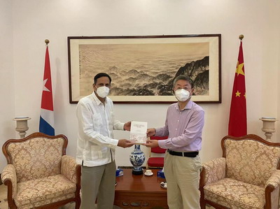 2021年10月28日,驻古巴大使马辉会见古共中央国际部副部长马尔散。