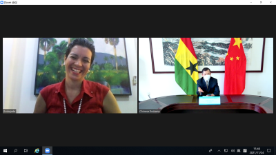2021年11月24日,驻加纳大使卢坤通过视频连线新任古巴驻加纳大使安奈特·乔·加西亚,双方就中古关系等进行了亲切友好交谈。