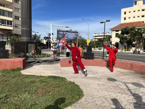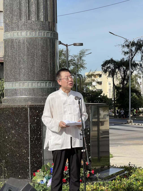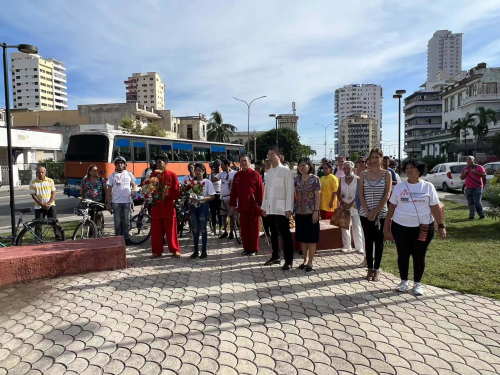 2022年10月10日,为纪念在古巴独立战争中牺牲的华人先烈,中国驻古巴使馆与哈瓦那华区管理局共同举办中国古巴“历史十月”自行车巡游比赛,50余名自行车运动爱好者报名参赛。巡游自哈瓦那华人街出发,途径古巴民族英雄、独立战争领袖何塞·马蒂及安东尼奥·马赛奥塑像,抵达旅古华侨纪功碑并举行主题活动。马辉大使偕夫人李学兵出席活动并致辞,古巴全国对外友协、哈瓦那革命广场区人民政权代表大会负责人及华侨华人代表出席,古巴武术与气功学校师生进行了精彩的舞剑表演。