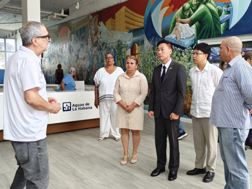 2026年4月15日,驻古巴大使华昕参观哈瓦那水务公司,考察使馆捐赠的光伏设备使用情况,哈瓦那省省长埃尔南德斯、哈瓦那水务公司经理鲁比等陪同。