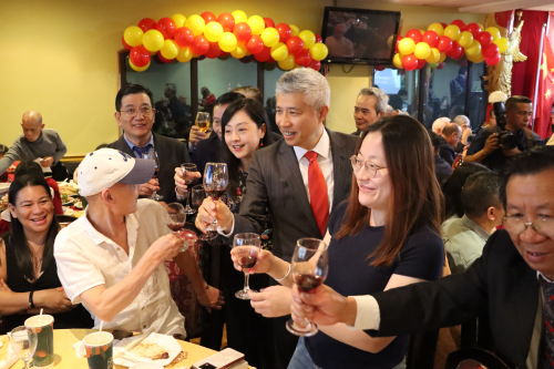 现场老友新朋,亲情暖融,击鼓舞狮,欢歌笑语,共祝祖(籍)国繁荣昌盛,共祝中洪关系明天会更好。