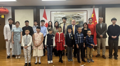 2025年10月12日,驻卡尔加里总领馆举办“友谊杯”庆祝中加建交55周年中文演讲比赛。驻卡尔加里总领事赵丽莹、埃德蒙顿孔子学院中方院长贾磊,卡尔加里大学教授蔡薇、副教授赖大卫,中文学校和媒体代表,参赛选手及亲友等参加。