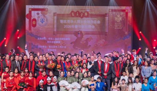2026年2月8日,驻蒙特利尔总领事戴玉明出席魁北克华人同乡会联合总会主办的2026年“欢乐春节”联欢晚会并致辞。加拿大前联邦参议员胡子修、当地华侨华人等近千人出席活动。
