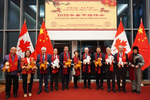 2026年2月10日,驻加拿大使馆隆重举办“温暖迎春·共庆中国年”2026年春节招待会。驻加拿大大使王镝,加外交部副部长莫里森、总理驻议会秘书布洛伊斯、参议员吉尼亚克、众议员罗耶、前参议员胡子修等10余名政府高官和参众议员及在加华侨华人、中资机构、留学生代表等约200人出席。