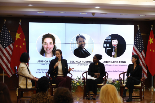 活动现场播放全球妇女峰会主题视频,美中关系全国委员会政府关系高级总监白洁沙、《中国日报》资深记者贝琳达·罗宾逊、美国芭蕾舞剧院一级独舞演员方仲静围绕“女性赋能”“中美女性在跨文化交流中的贡献”等话题深入交流,认为女性力量源于理解与支持,是连接两国民心的重要纽带。