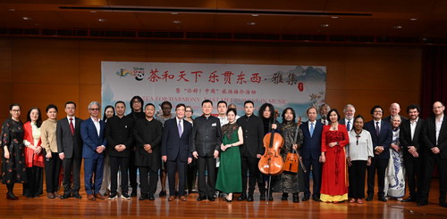 谢锋大使在致辞中,从文化底蕴、产业发展、文明互鉴三个维度介绍中国茶,表示,中国是茶的故乡、茶文化发祥地,也是全球最大茶叶生产国和消费国。茶韵悠长,承载中国传统文化的思想智慧;茶园叠翠,蕴含中国高质量发展的动能密码;茶道绵延,契合世界文明和合共生的大同境界。
