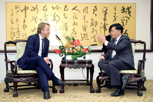 2018年3月23日,外交部部长助理秦刚会见美国彭博传媒集团首席执行官史哲庭,就有关问题进行了沟通。