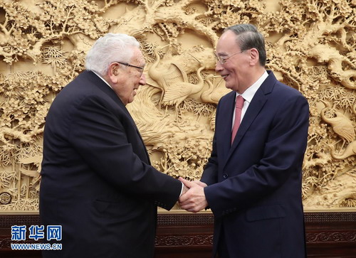 2019年11月23日,国家副主席王岐山在中南海会见美国前国务卿基辛格。