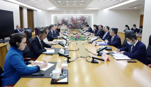 2024年4月15日,外交部副部长马朝旭会见美国驻华大使伯恩斯、美国国务院亚太事务助卿康达、白宫国安会中国事务高级主任贝莎兰。外交部美大司司长杨涛同美方举行会谈。
