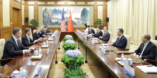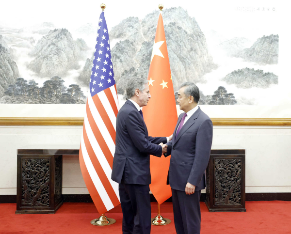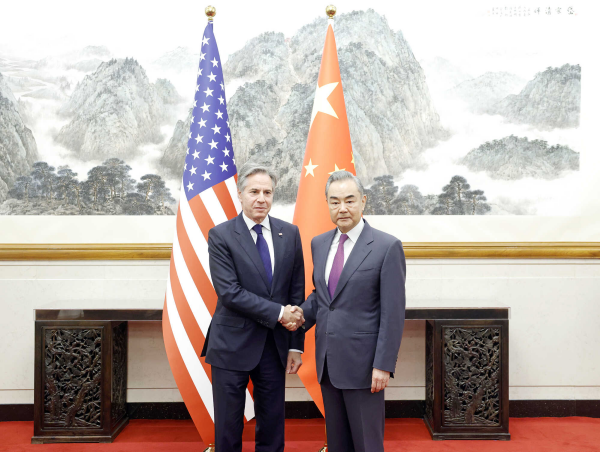 2024年4月26日,中共中央政治局委员、外交部长王毅在北京同美国国务卿布林肯举行会谈。