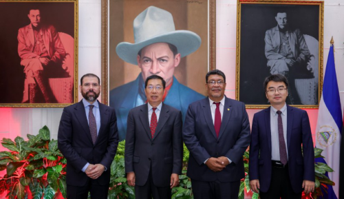 2025年10月9日,驻尼加拉瓜大使陈曦辞行拜会尼联合外长詹特斯克,尼总统顾问劳雷亚诺参加会见。