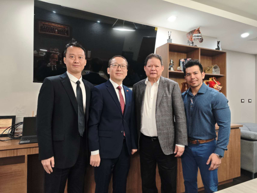 2025年12月5日,驻特立尼达和多巴哥大使任洪岩走访特多知名文化产业企业大秦集团,会见集团董事长德雷克·钱。