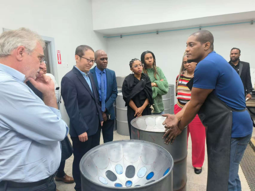 2025年12月11日,驻特立尼达和多巴哥大使任洪岩与驻特多外交使团代表共同参访特多知名钢鼓制造企业特多乐器有限公司。