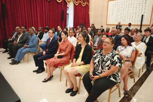 任大使向现场来宾致以新春祝福,全面回顾2025年中国式现代化建设及中特关系发展成果,强调2026年是中国“十五五”规划开局之年和特多“复兴蓝图”全面实施的重要年份,又适逢华人抵特多220周年,中方愿以此为契机,同特方携手,共同推动两国关系在新的一年如骏马奔腾、蹄疾步稳。