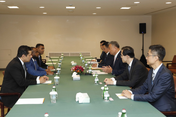 当地时间2025年9月25日,外交部副部长苗得雨在纽约应约会见特立尼达和多巴哥外交和加共体事务部长索伯斯。