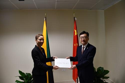 2025年9月18日,新任驻牙买加大使王锦峰向牙外交和外贸部长约翰逊-史密斯递交国书副本。
