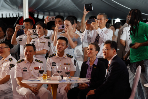 2025年12月9日,中国海军“丝路方舟”号医院船在牙买加首都金斯敦皇家港举行甲板招待会。驻牙买加大使王锦峰,牙外交和外贸部长约翰逊-史密斯、卫生和健康部长塔夫顿、国防军参谋长威米斯-戈尔曼、金斯敦市长斯威比等110余人出席。
