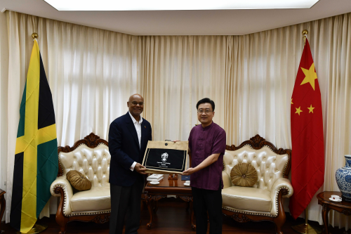 2026年4月10日,驻牙买加大使王锦峰会见牙科技事务特使卡尼,双方就中文教育及科技领域合作交换意见。牙科技大学校长布朗在座。