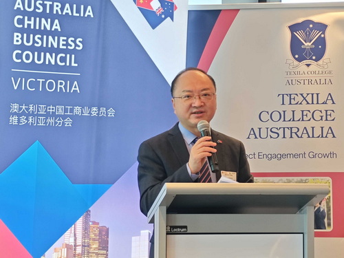 2025年9月16日,驻墨尔本总领事房新文出席澳中商会维州分会举办的澳大利亚—中国国际教育论坛并致辞。房总领事宣介了习近平主席全球治理倡议,介绍艾伦州长访华情况,指出论坛举办正当其时,有利于维州教育界了解最近发展情况,增进理解、扩大合作、坚定信心,为中澳关系迈向前进注入更多动力。