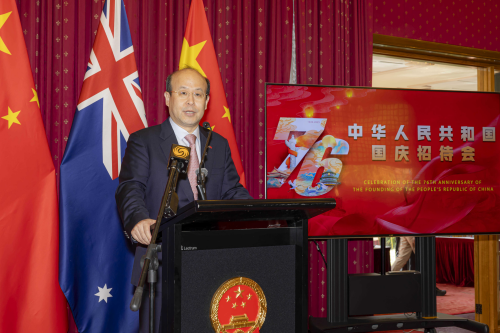 2025年9月25日,驻澳大利亚使馆举行国庆76周年招待会。驻澳大利亚大使肖千、澳外交贸易部副秘书长艾莉及各国驻澳使团、中澳各界人士等300余人出席。